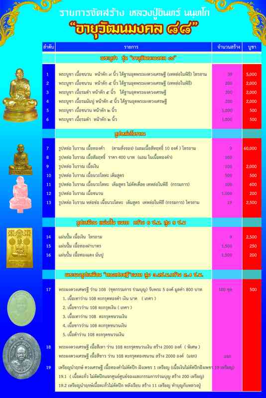 ****** รายการพระบูชา รุ่นอายุวัฒนะมงคล ******