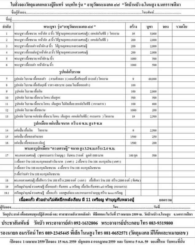 เปิดจองแล้ว ..หลวงปู่อินทร์ นนฺทโก รุ่น"อายุวัฒนะมงคล" ๘๘.....ทางวัด และคณะกรรมการวัดจัดสร้างเอง เนื่องในวาระ ครบรอบ ๘๘ ปี ในวันที่ 4 กรกฎาคม 2559