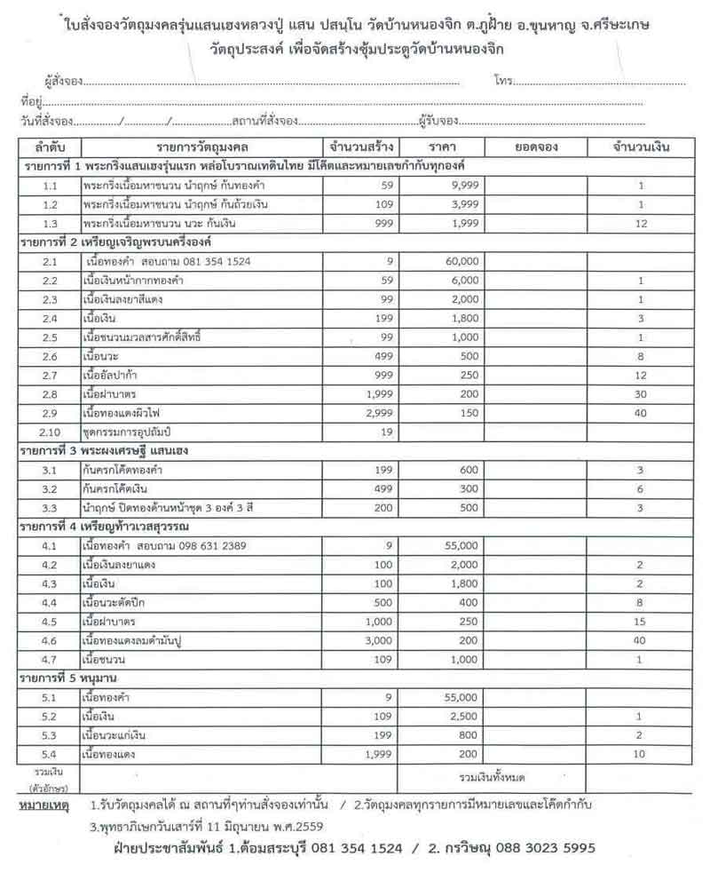 รายละเอียด จำนวน ที่สามารถ จองได้ และราคาตามใบรายการจองครับ