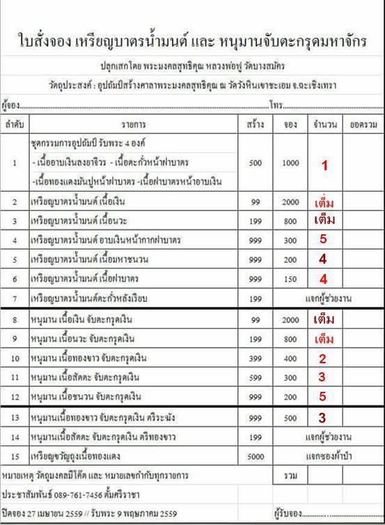 รับวัตถุมงคล ตั้งแต่ 9 พฤษภาคม 59