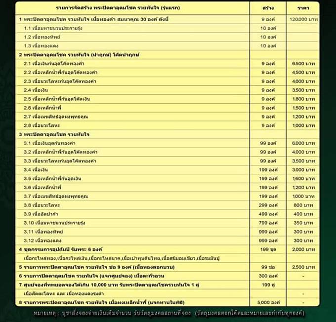 รายการที่ 3.11 เนื้อทองทิพย์ สร้าง 999 องค์ๆละ ...300 บาท มียอด = 10 องค์