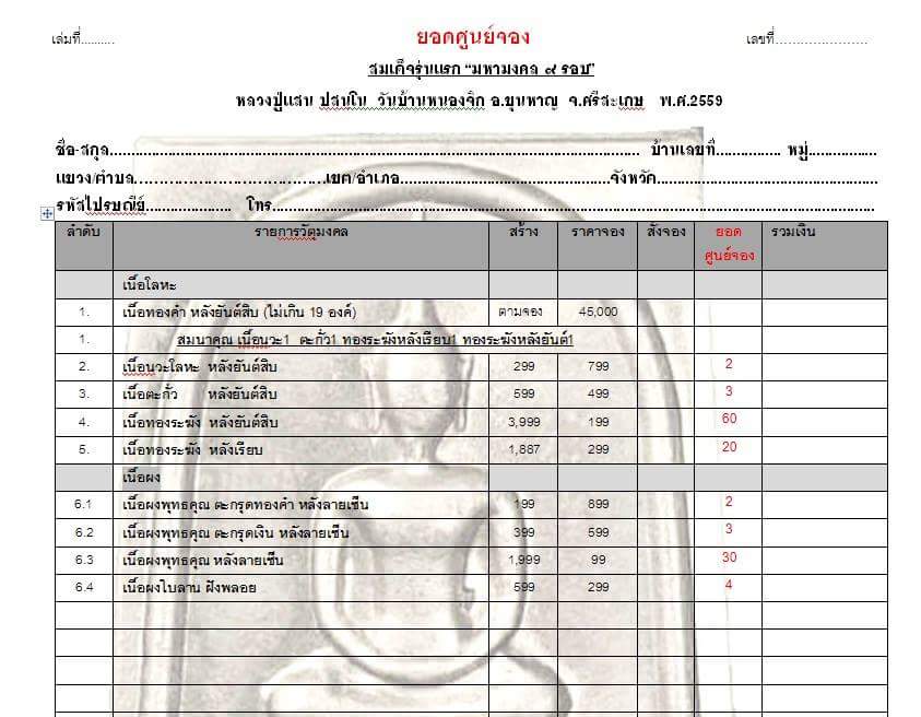 รายการที่ 6.3 ผงพุทธคุณ หลังลายเซ็น ราคาจอง 99 ยอด 30 องค์
