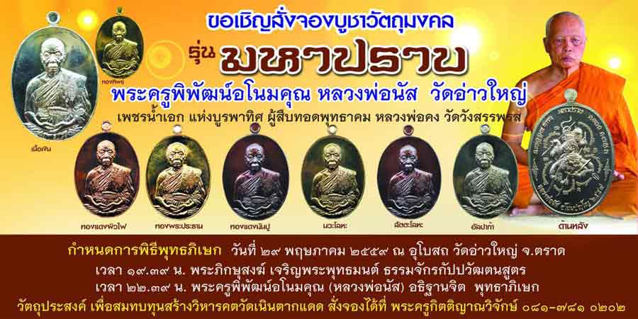 | หัวข้อกระทู้ : ไม้มงคล เปิดจอง***เหรียญมหาปราบ หลวงพ่อนัส วัดอ่าวใหญ่ จ.ตราด***สวยขั้นเทพ โค้งสุดท้ายก่อนปิดจอง |