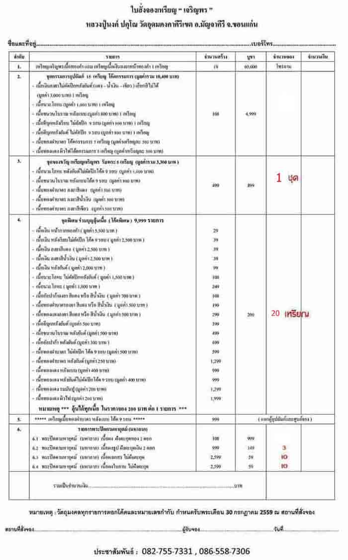 รายการที่4 ชุดพิเศษร่วมบุญลุ้นเนื้อโค๊ดพิเศษมียอด 20เหรียญเหรียญละ 200บาท