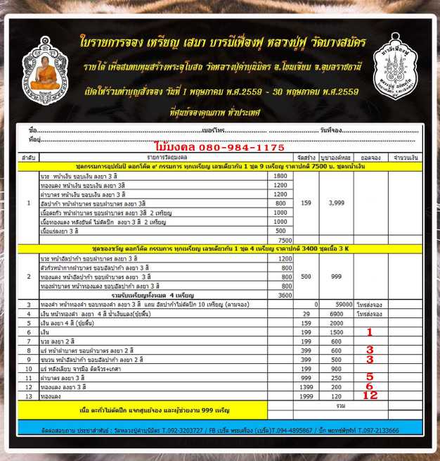 ***ลูกค้านอกเวปโทรสั่งจองได้ที่เบอร์ 080-984-1175***