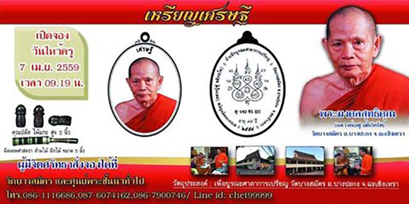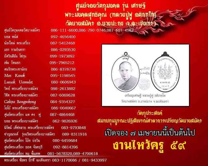 ขอเชิญร่วมทำบุญสั่งจอง วัตถุมงคล รุ่น"เศรษฐี" พระมงคลสุทธิคุณ(หลวงปู่ฟู อติภทฺโท) วัดบางสมัคร
