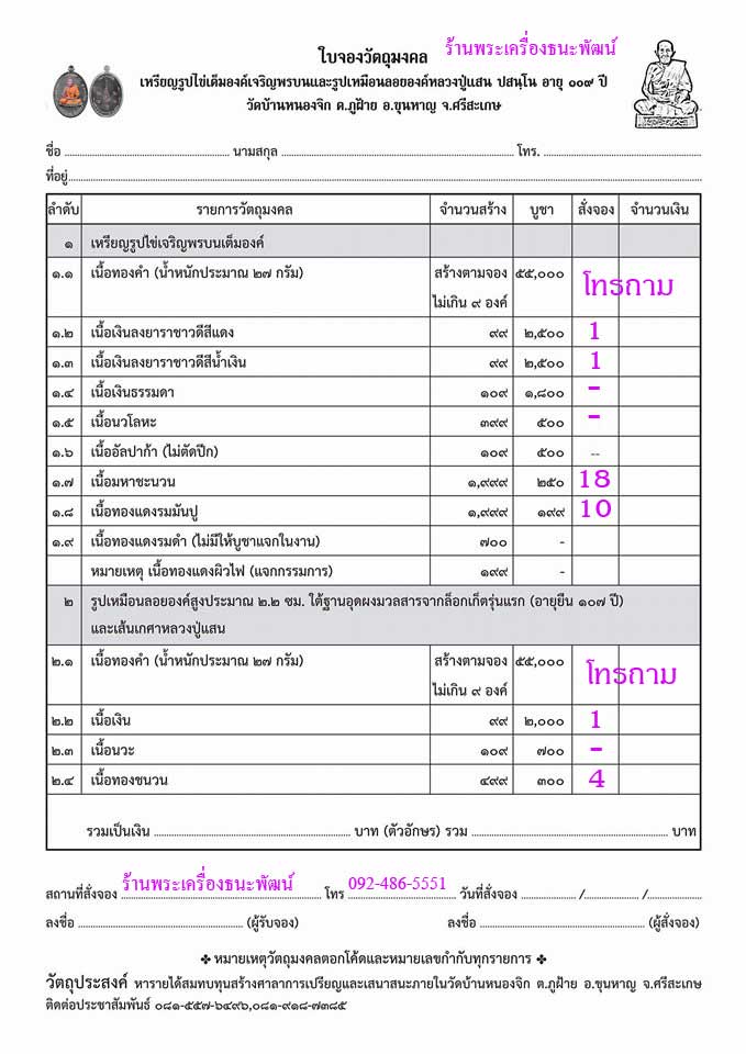 เปิดจอง เหรียญเจริญพรบนเต็มองค์ / รูปหล่อลอยองค์เจริญพร ลป.แสน ปสันโน ศรีษะเกษ