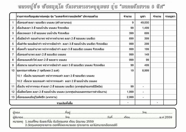 ** แจ้งรายการและจำนวนสั่งจองไว้ได้เลยนะครับ มีรายการเปิดจอง ดังนี้ครับ