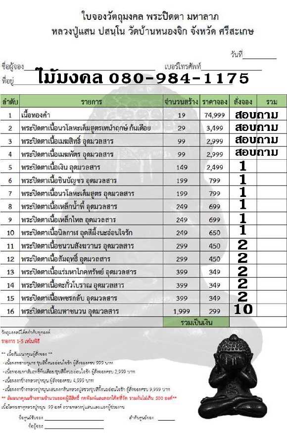 จองรายการที่ 5 เนื้อเงินอุดมวลสาร 1 องค์ = 2499 บาท