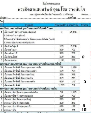 รายการที่ 6 ผงงาช้าง 15 องค์ ๆ ละ 150 บาท