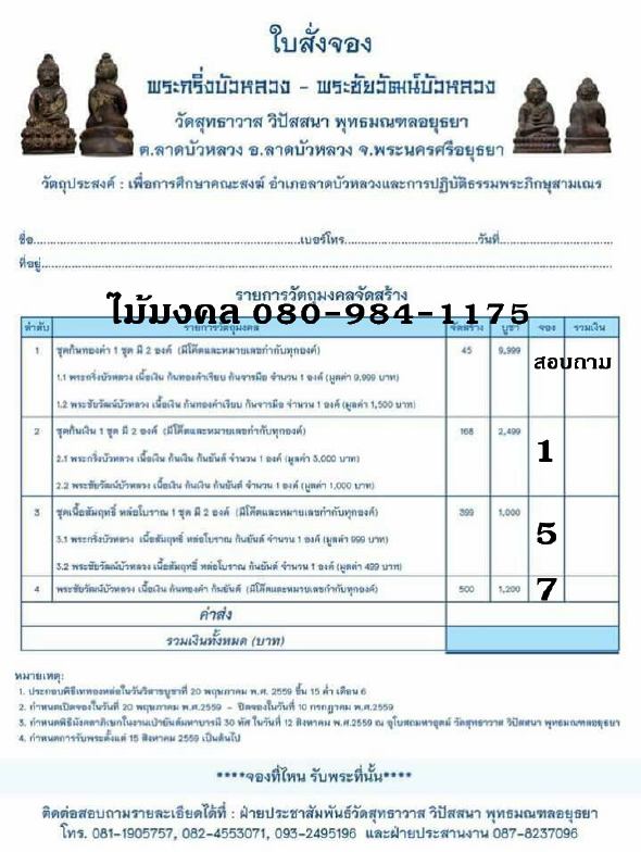 ***หรือจะมาสั่งสั่งจองได้ที่ร้านไตรสรณะ พันธุ์ทิพย์ งามวงศ์วาน ชั้น2 ก็ได้ครับ***