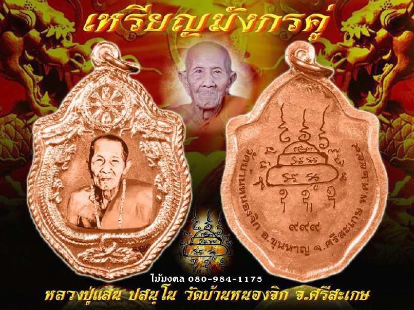 | หัวข้อกระทู้ : ไม้มงคล เปิดจอง***เหรียญมังกรคู่หลวงปู่แสน วัดป่าหนองจิก จ.ศรีสะเกษ***200 บาท ลุ้นทองคำ |