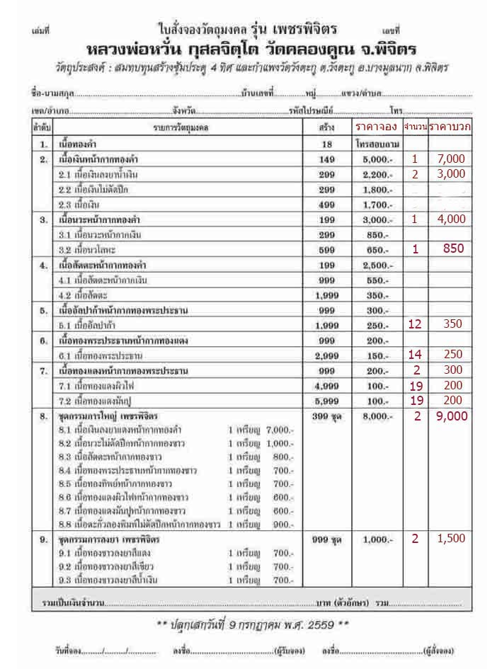 ยอดจองมีตามรายการ(ราคาบวกนะครับ)