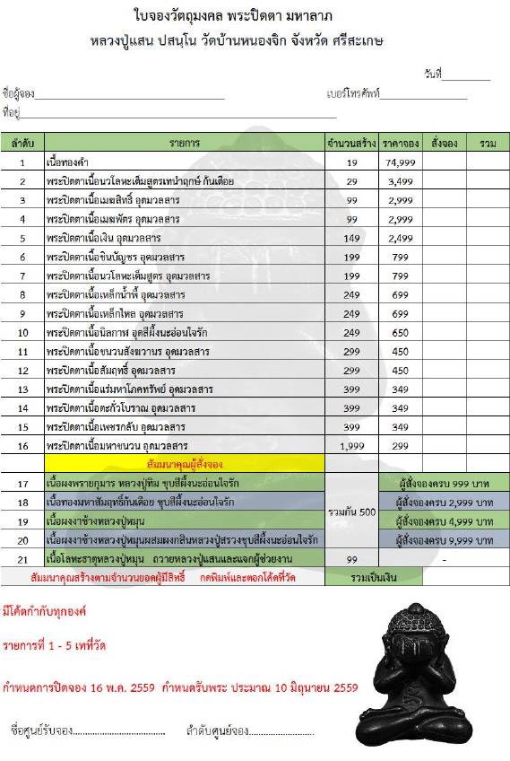 ***หรือจะมาสั่งสั่งจองได้ที่ร้านไตรสรณะ พันธุ์ทิพย์ งามวงศ์วาน ชั้น2 ก็ได้ครับ***
