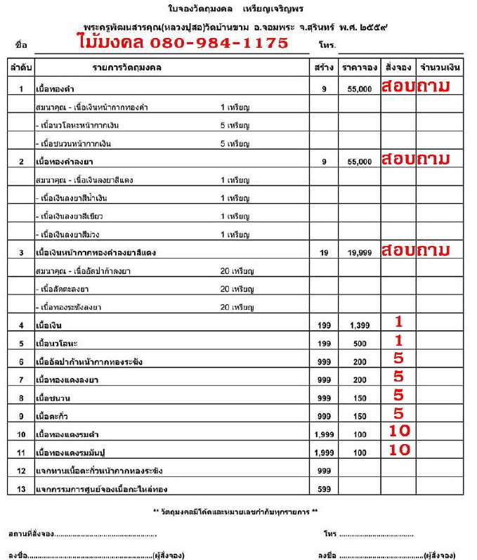 ***ลูกค้านอกเวปโทรสั่งจองได้ที่เบอร์ 080-984-1175***