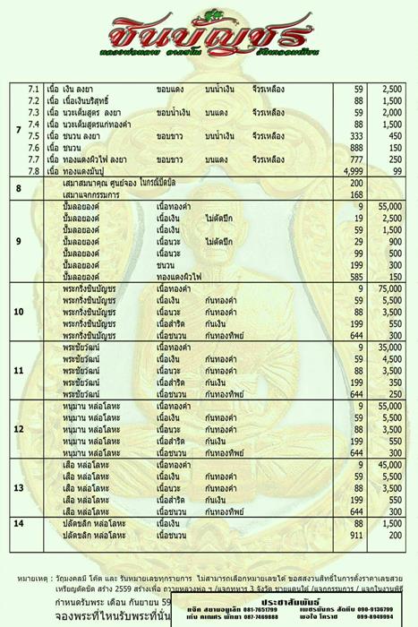 ** ราคาจองทุกรายการ มียอดดังนี้