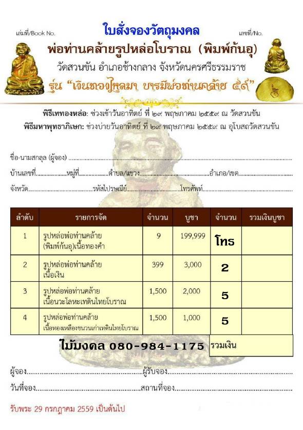 | หัวข้อกระทู้ : ไม้มงคล เปิดจอง***รูปหล่อโบราณพ่อท่านคล้าย (พิมพ์ก้นอุ) วัดสวนขัน รุ่นเงินทองไหลมา***ราคาจอง |