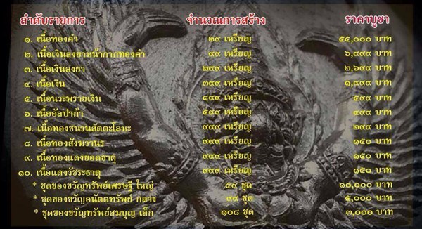7.เนื้อทองชนวนสัตตะโลหะ สร้าง 999 เหรียญ มียอด 15 เหรียญๆละ 299 บ.
