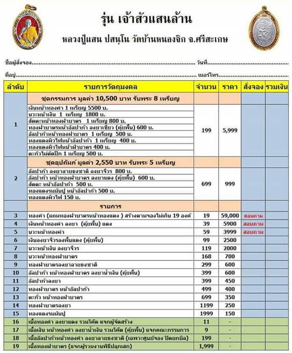 [[[เปิดจอง]]]หลวงปู่แสน รุ่น"เจ้าสัวแสนล้าน" วัดบ้านหนองจิก จังหวัดศรีสะเกษ
