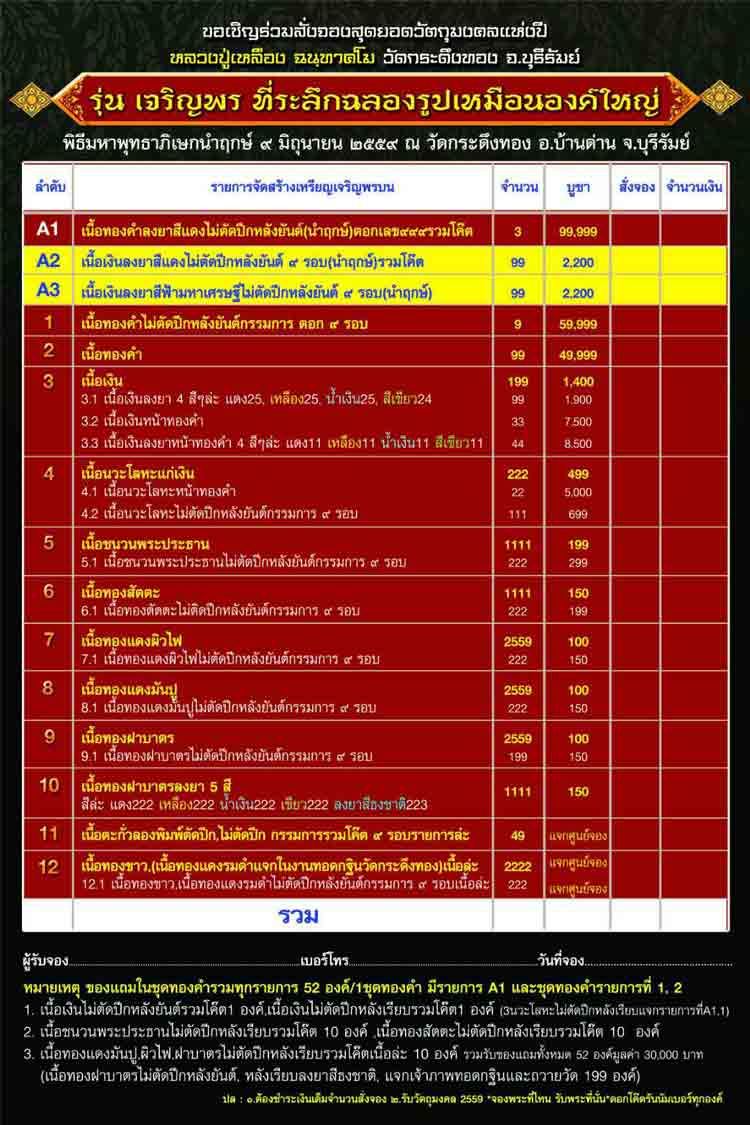 5. เนื้อชนวนพระประธาน มี 20 เหรียญๆ ละ 199 บาท