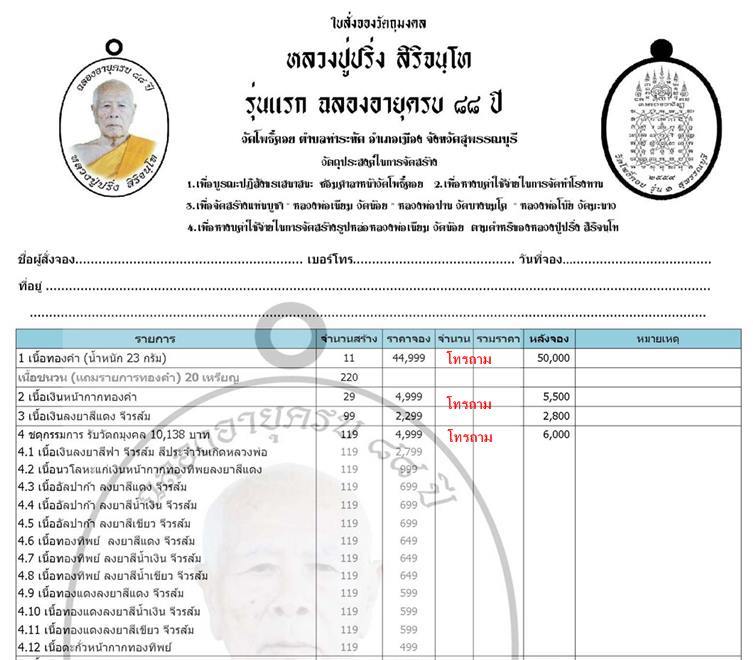 จองเหรียญ รุ่นแรก ฉลองอายุครบ 88 ปี หลวงปู่ปริ่ง สิริจนโท วัดโพธิ์ดอย ต.ท่าระหัด อ.เมือง จ.สุพรรณบุรี