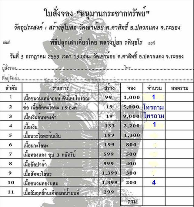 เปิดจองโค้งสุดท้าย "หนุมานกระชากทรัพย์" ปลุกเสกเดี่ยวโดย หลวงปู่ฮก รตินฺธโร