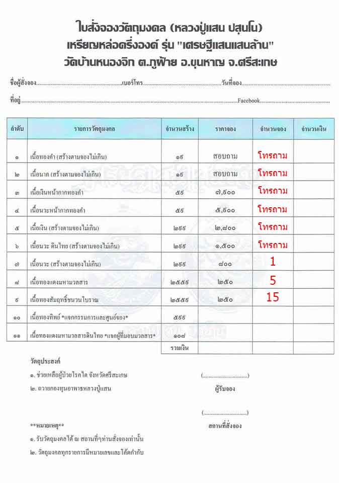 ผู้ที่สั่งจองแล้วกรุณาชำระเงินภายในเวลา 1 วัน
