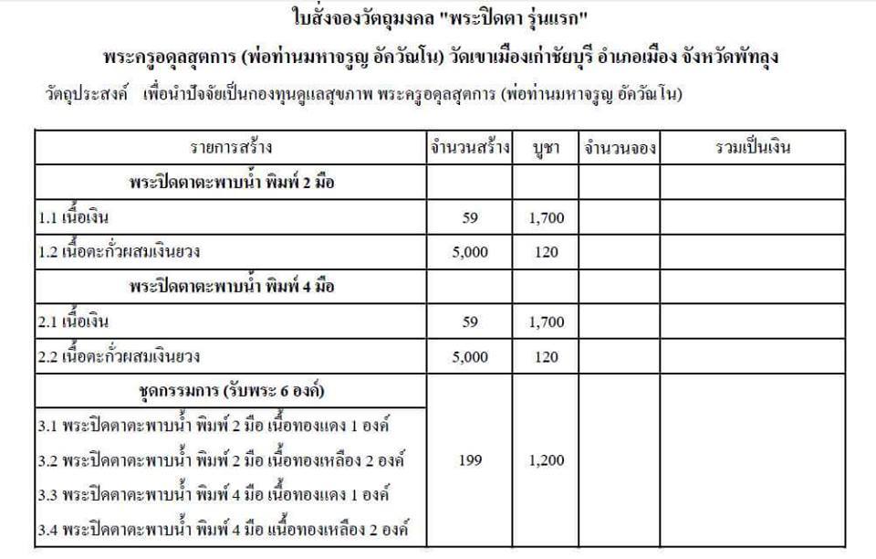 มีโค็ต มีหมายเลข มีกล่อง กำหนดรับพระ 20 สค 59