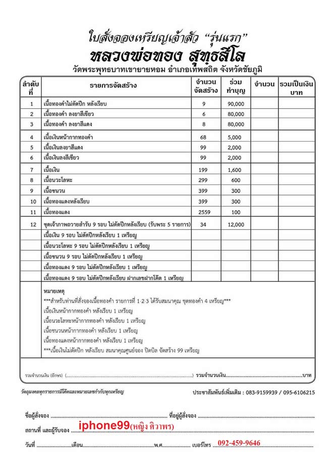 (พิเศษ)เนื้อเงินไม่ตัดปีกหลังเรียบ สมนาคุณศูนย์จอง จัดสร้าง 99 เหรียญ ราคาเหรียญละ 2,300 บาท มียอด 3 เหรียญ