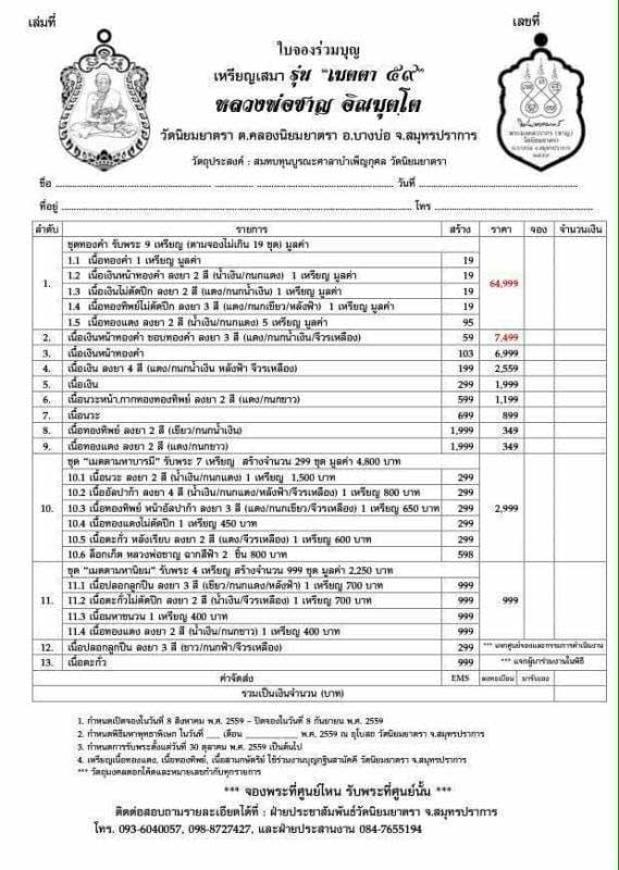 -รายการที่ 10 ชุดเมตตามหาบารมี (รับพระ7เหรียญ) จำนวน 1 ชุด