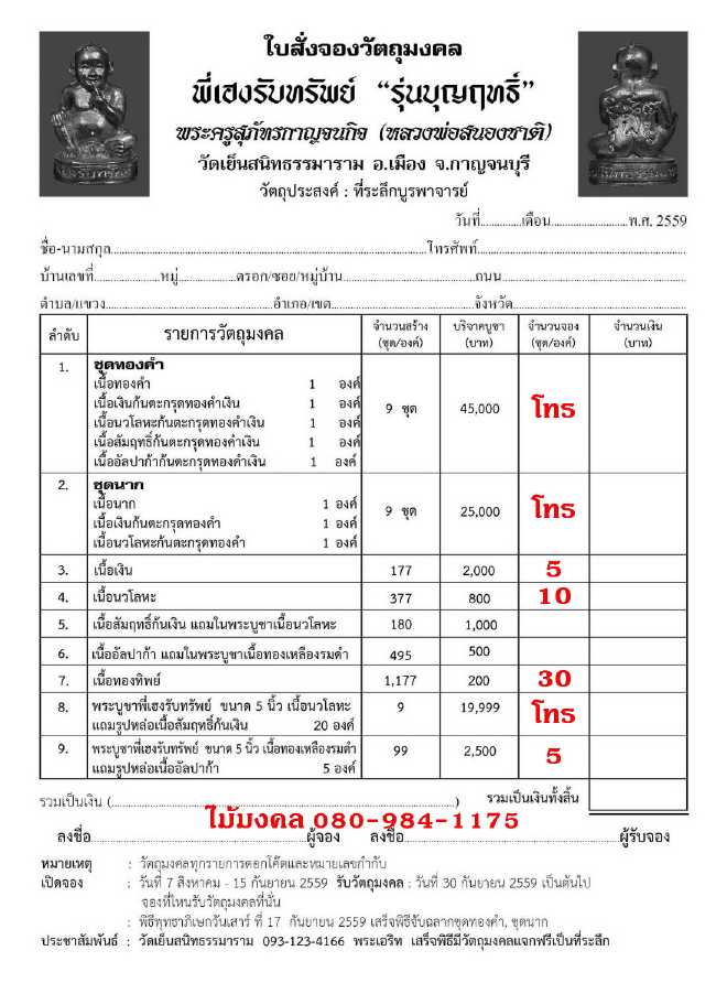 ***ลูกค้านอกเวปโทรสั่งจองได้ที่เบอร์ 080-984-1175***
