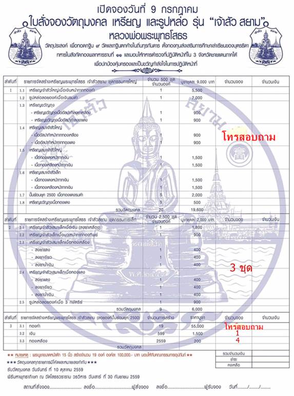 กำหนดรับรับวัตถุมงคลตั้งแต่ 9 ตุลาคม 59