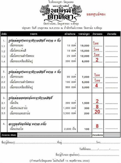 รายการจองวัตถุมงคล
