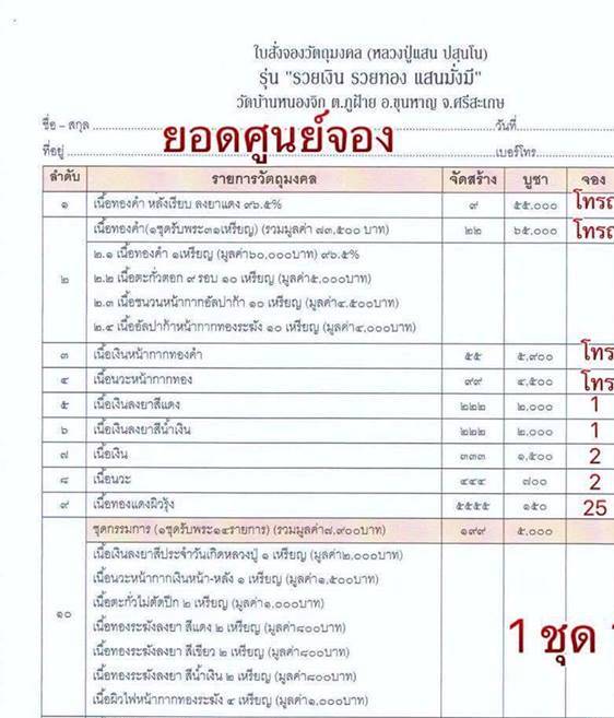รายการยอดจองมีดังนี้