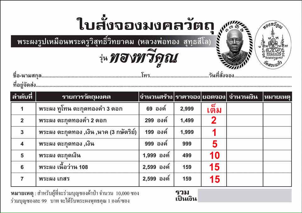 ลำดับที่ 7.เนื้อเกสร มี ยอด 15 องค์ ราคา 159 บาท