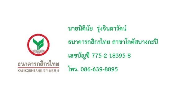 $$$ เพิ่ม 100 บาท ค่าจัดส่งแบบ EMS ทั่วไทย |