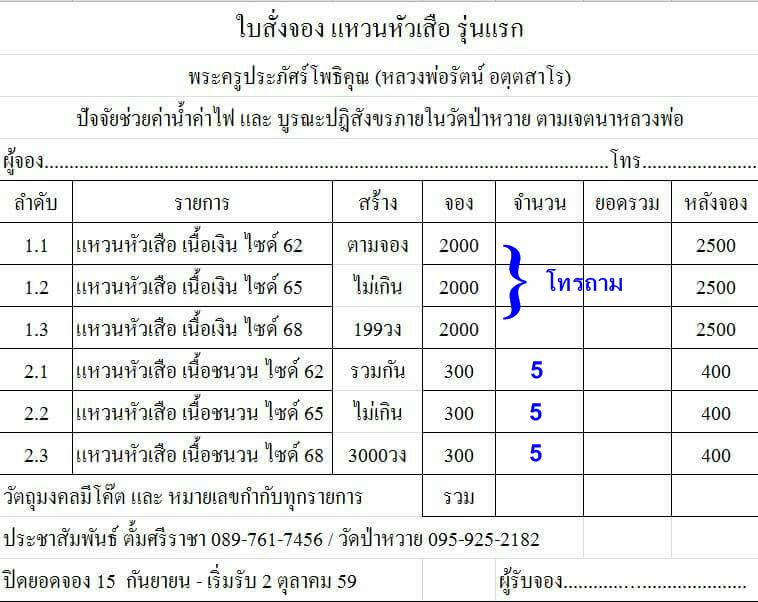 กำหนดรับรับวัตถุมงคลตั้งแต่ 2 ตค 59