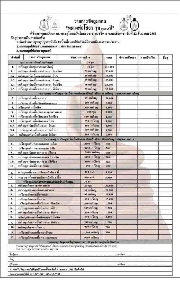 1. พระบูชาเนื้อทองเหลืองขนาดหน้าตัก 9 นิ้ว องค์ละ 10,000 บาท