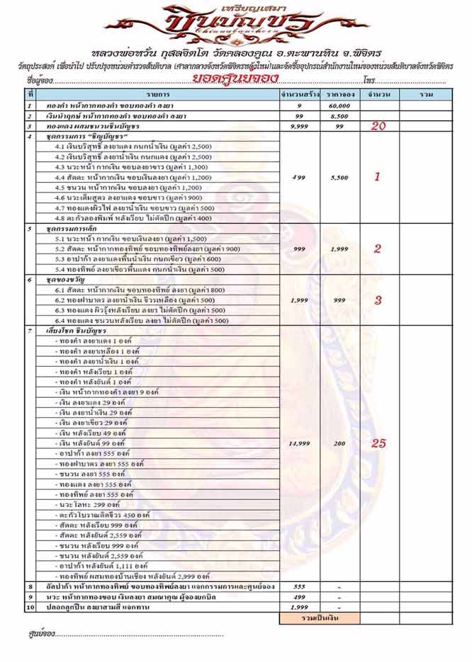 รายการที่ 5 ชุดกรรมการเล็ก (รับพระ 4 เหรียญ) ราคา 1,999 บาท มียอด 2 ชุด