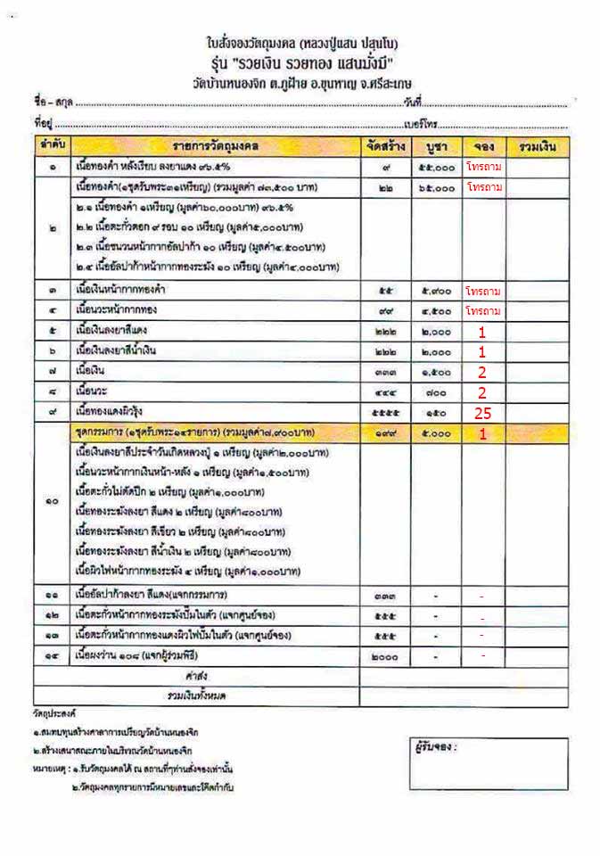 มียอดตามรายการที่เปิดจอง