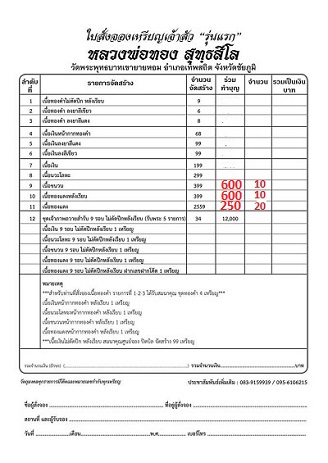 รายการที่ 9 เนื้อชนวน มียอด 10 เหรียญ ราคาเหรียญละ 600 บาท