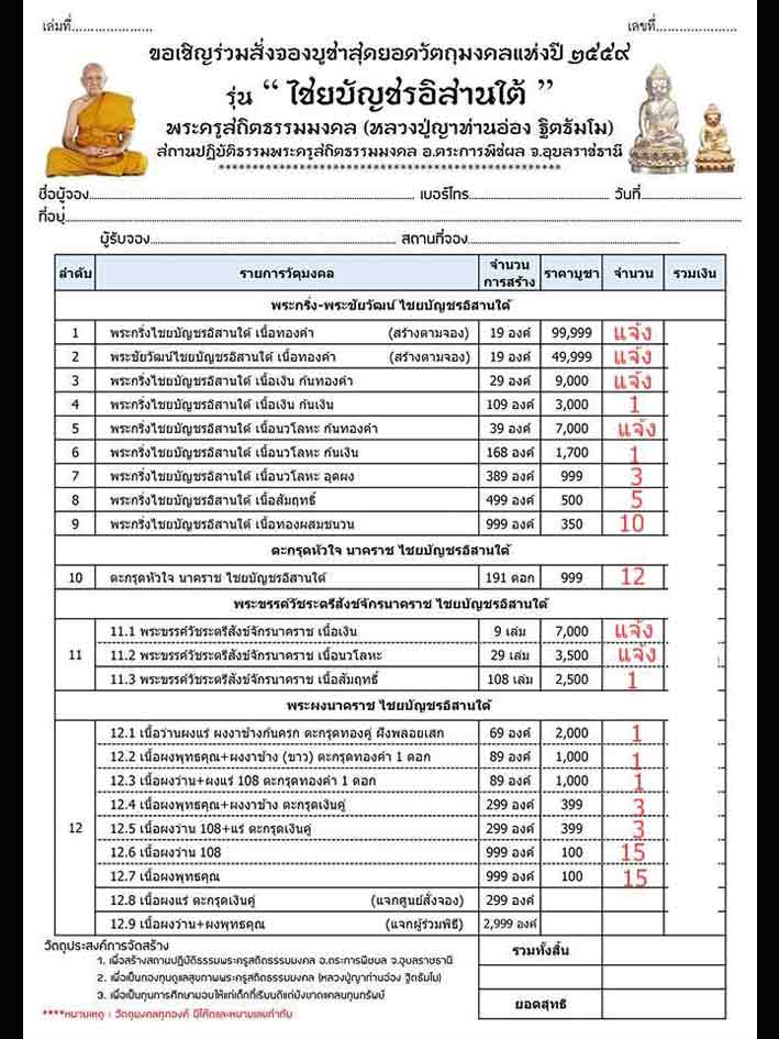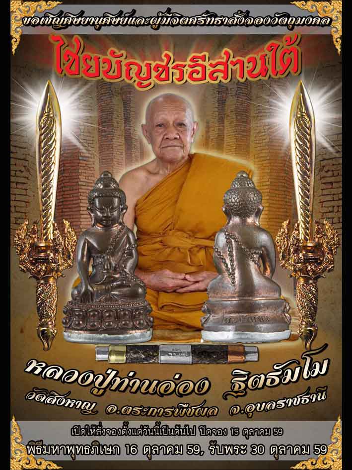 [[[เปิดจอง]]]วัตถุมงคล รุ่น"ไชยบัญชรอีสานใต้" ญาท่านอ่อง จังหวัดอุบลราชธานี