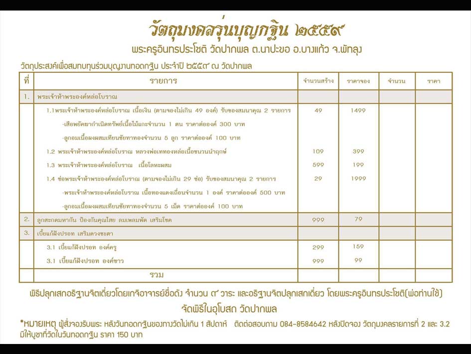 [[[เปิดจอง]]]วัตถุมงคล รุ่น"กฐิน2559" พ่อท่านไช้ วัดปากพล จังหวัดพัทลุง