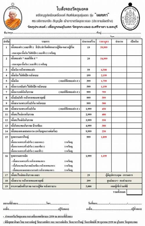 15.ชุดกรรมการใหญ่ สร้าง 999 ชุดๆละ1,599 บ. มียอด 20 ชุด ( 1 ชุดได้รับพระ 3 เหรียญ)