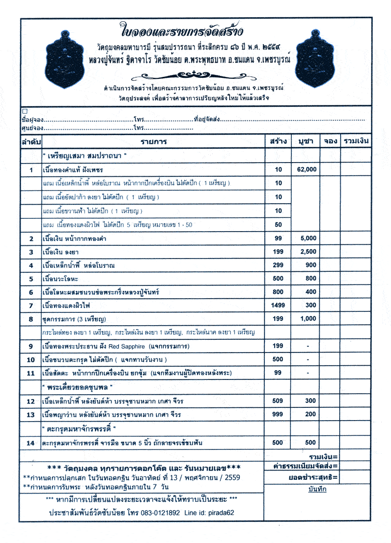 ชุดกรรมการ รับพระ 3 เหรียญ สร้างเพียง ๑๙๙ ชุดเท่านั้น ประกอบด้วย