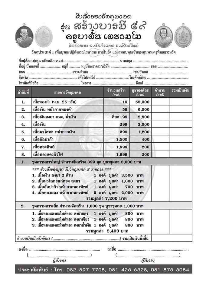 [[[เปิดจอง]]]วัตถุมงคลรุ่นสร้างบารมี ๕๙ ครูบาตั๋น วัดย่าพาย จ.เชียงใหม่
