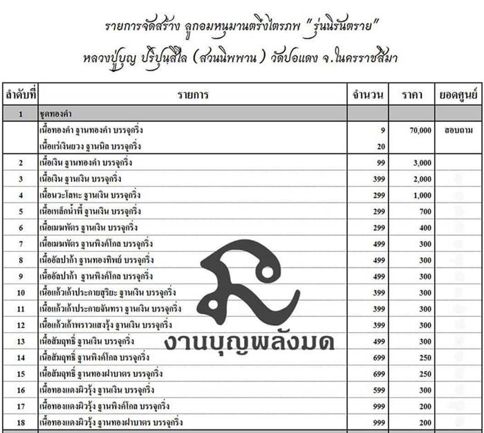 รายการ 4. เนื้อนวะโลหะ ฐานเงิน บรรจุกริ่ง ราคาจอง 1,000.-บาท มียอด = 2