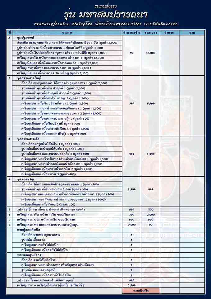2.2 รูปหล่อเบ้าทุบ เนื้อเงินบริสุทธิ์ มี 1 องค์ๆละ 2100 บาท