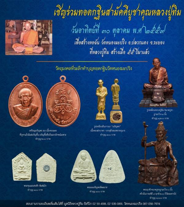 ขอเชิญชวนร่วมทำบุญ ทอดกฐินสามัคคี บูชาพระคุณหลวงปู่ทิม เพื่อสร้างหอฉัน วัดหนองมะปริง อ.ปลวกแดง จ.ระยอง