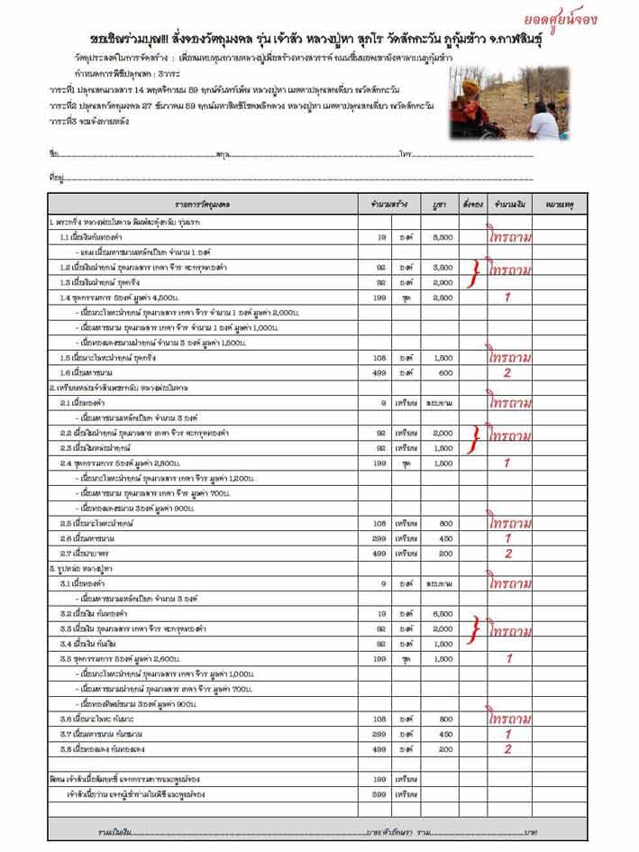 วัตถุประสงค์ในการจัดสร้าง : เพื่อสมทบทุนถวายหลวงปู่เพื่อสร้างทางสวรรค์ ถนนขึ้นยอดเขายังศาลาบนภูกุ้มข้าว